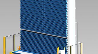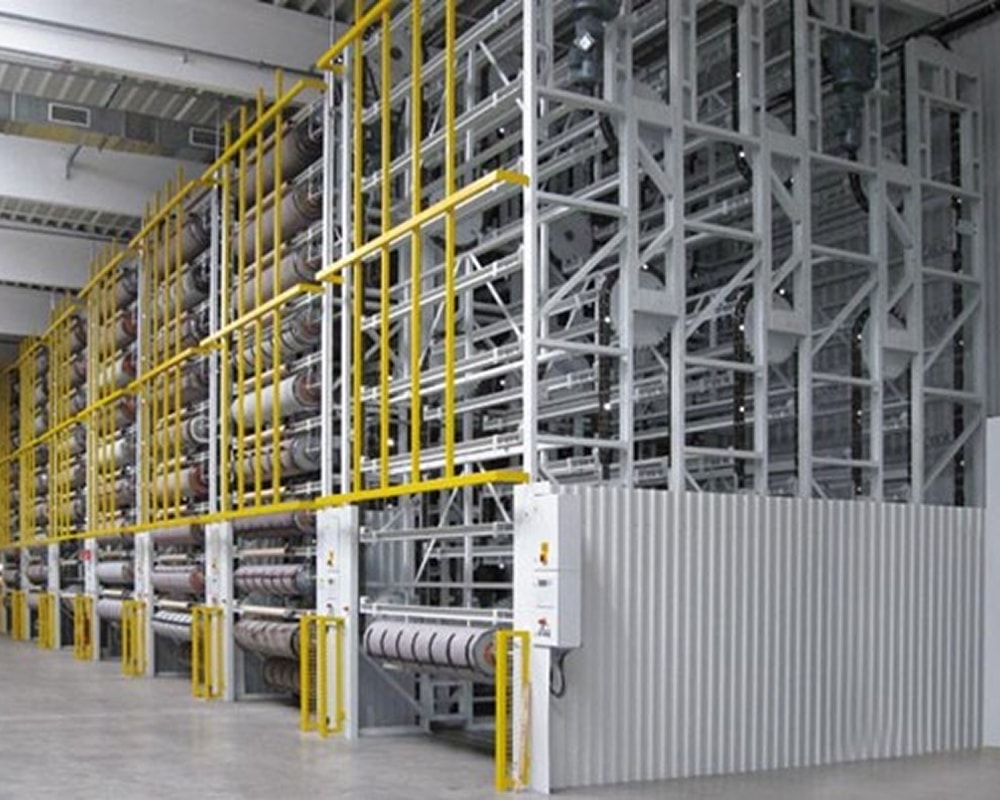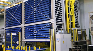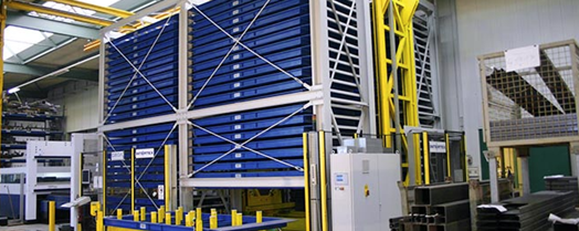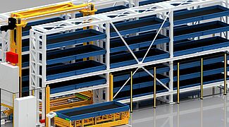 3. O TowerMat TM-RE é a versão mais potente e foi desenvolvido para grandes volumes de armazenamento – com um transelevador que se move lateralmente ao longo de várias torres de armazenamento.