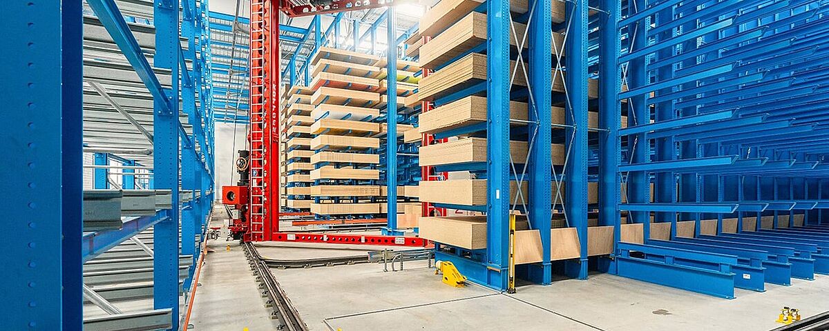 O armazenamento de paletes e caixas metálicas numa estante vertical de até 25 m constitui, desde há décadas, uma vitória para a automatização no mercado. Dependendo dos requisitos, o mesmo é individualmente planeável, de forma clássica com um garfo telescópico, para o armazenamento simples ou duplo, profundo ou alternativamente com recurso a um sistema shuttle ou a meios de elevação de carga especiais. É concretizável sob a forma de funcionamento total ou parcialmente automático, com cabine de condutor.