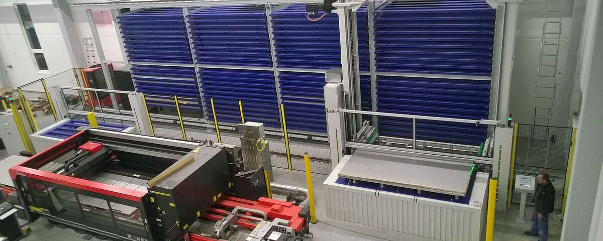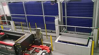 O PickMat automatiza o fornecimento de material para máquinas de corte a laser e garante um fluxo de trabalho suave no processamento de chapas. O sistema gere tanto o fornecimento de matéria-prima como o retorno ao armazém das peças cortadas. A reutilização dos restos de chapa é possível sem problemas. A redução dos tempos de carga e descarga conduz a um aumento significativo da produtividade em todo o processo de produção.
